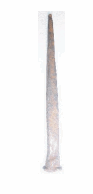 Prego de ferro forjado manualmente, utilizado em construções do período do Brasil Colônia. A peça foi encontrada em um prédio localizado na Praça Júlio de Castilhos, município de Encruzilhada, durante obras de reconstrução. O imóvel pertencia a Olegário Moreira.
