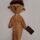 Boneco de pano vestindo um pijama de dormir na cor branca com estrelas rosas, botão de pressão interno no pescoço e gorro vermelho. Mãos viradas para fora, cabelo preto e nariz vermelho saliente.