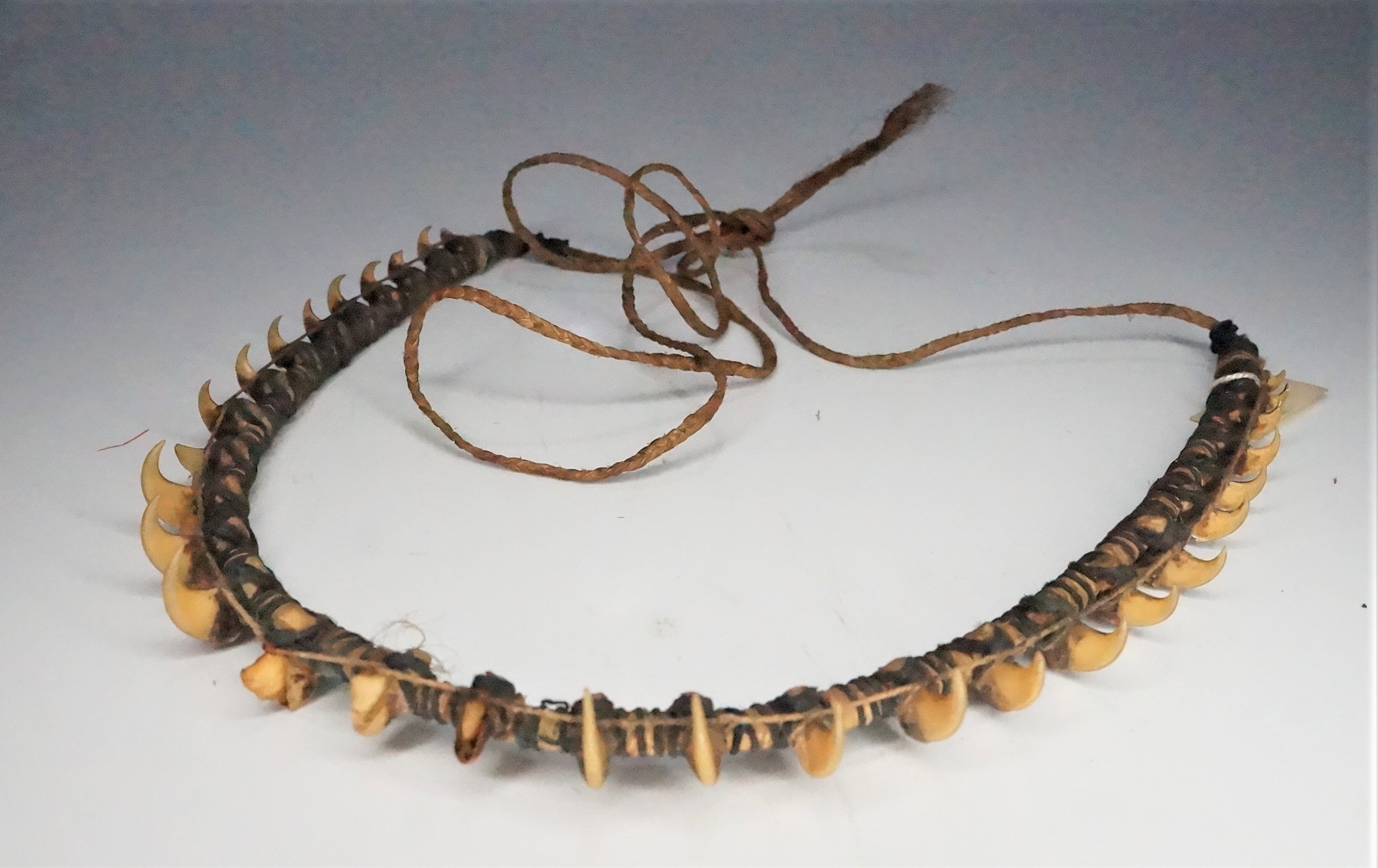 Haste flexível, cilíndrica, envolta em fibras que prendem 18 unhas de onça colocadas com as pontas na mesma direção e a distâncias regulares, simetricamente dispostas do maior ao menor, com as maiores no centro. Das extremidades da haste saem cordões de fibra trançada que prendem a coroa na cabeça.
