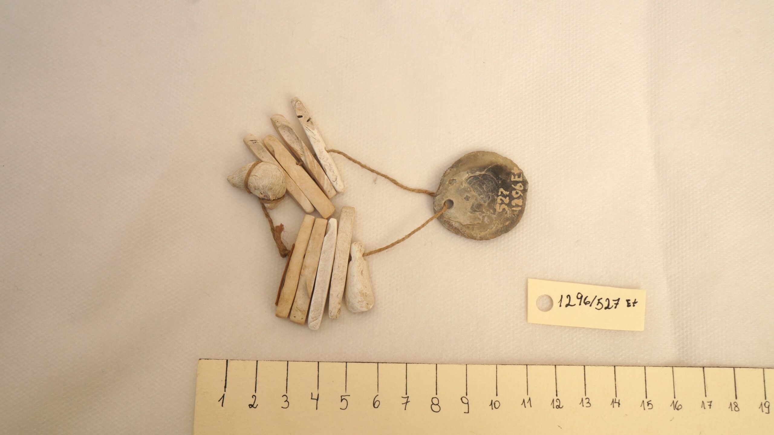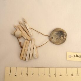 Adorno em concha Voltar Anexos DSC00401 DSC00403 DSC00406 Metadados Miniatura Compartilhe Número tombo527Número de catálogo1296ColeçãoEtnológicaNome/denominaçãoAdorno em conchaDescrição do objetoDisco de concha com pequeno orifício junto à borda. Oito peças retangulares atravessados por minúsculo orifício.Materialidadeconcha | ossoDimensõesAltura 8,8 cm; comprimento 6,5 cm; espessura 0,3 cmProcedênciaLajeado | Rio Grande do SulData do objetoIndeterminadoForma de aquisiçãoDoação (Jorge Schnac)Condições de reproduçãoAcervo protegido pela Lei 9.610/98. Proibida a reprodução para fins comerciais sem a autorização dos detentores legais do direito. Obrigatória a citação da referência para fins acadêmicos e expositivos. Continuar navegando Dente de onça Adorno em concha Voltar para a lista de itens