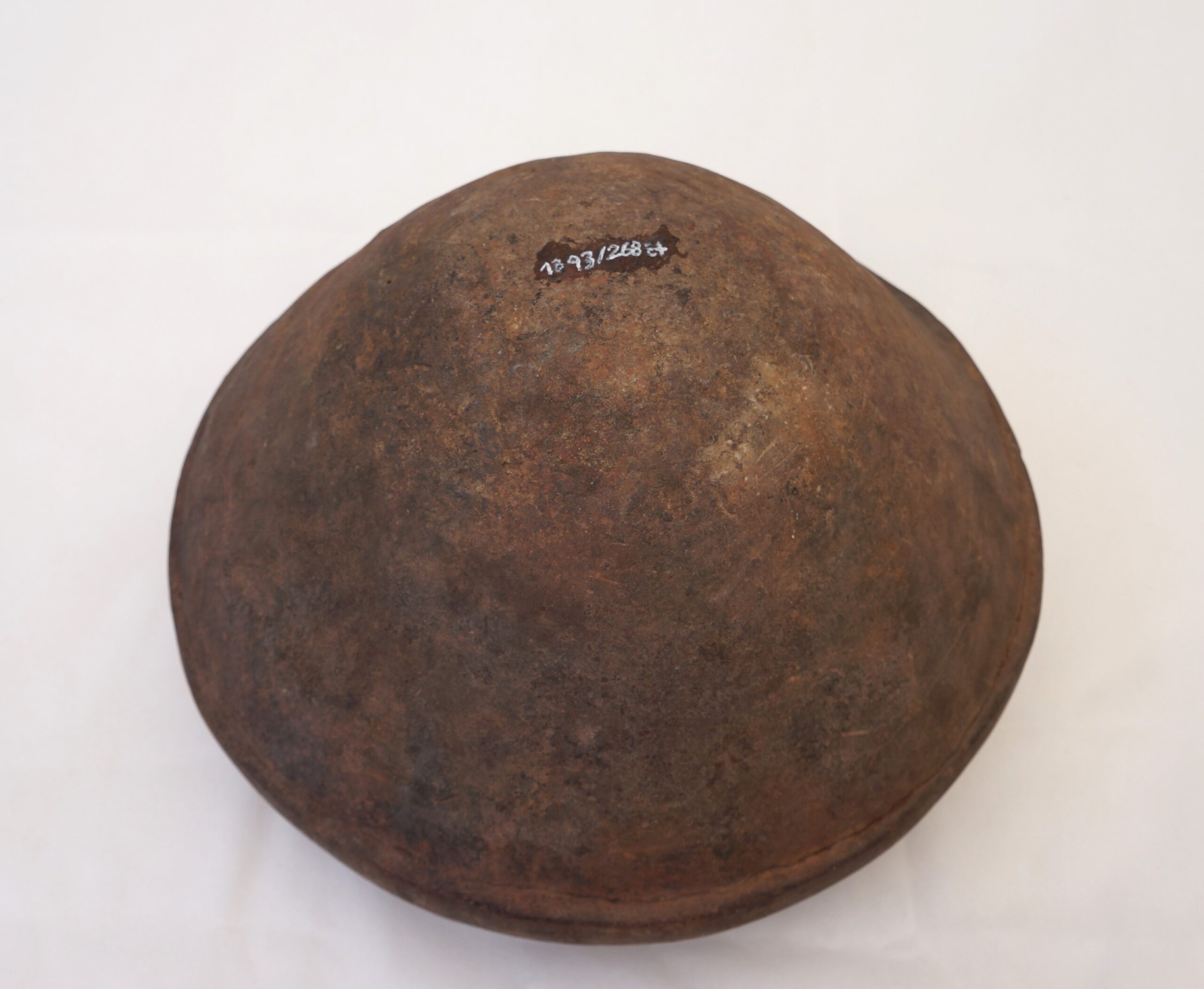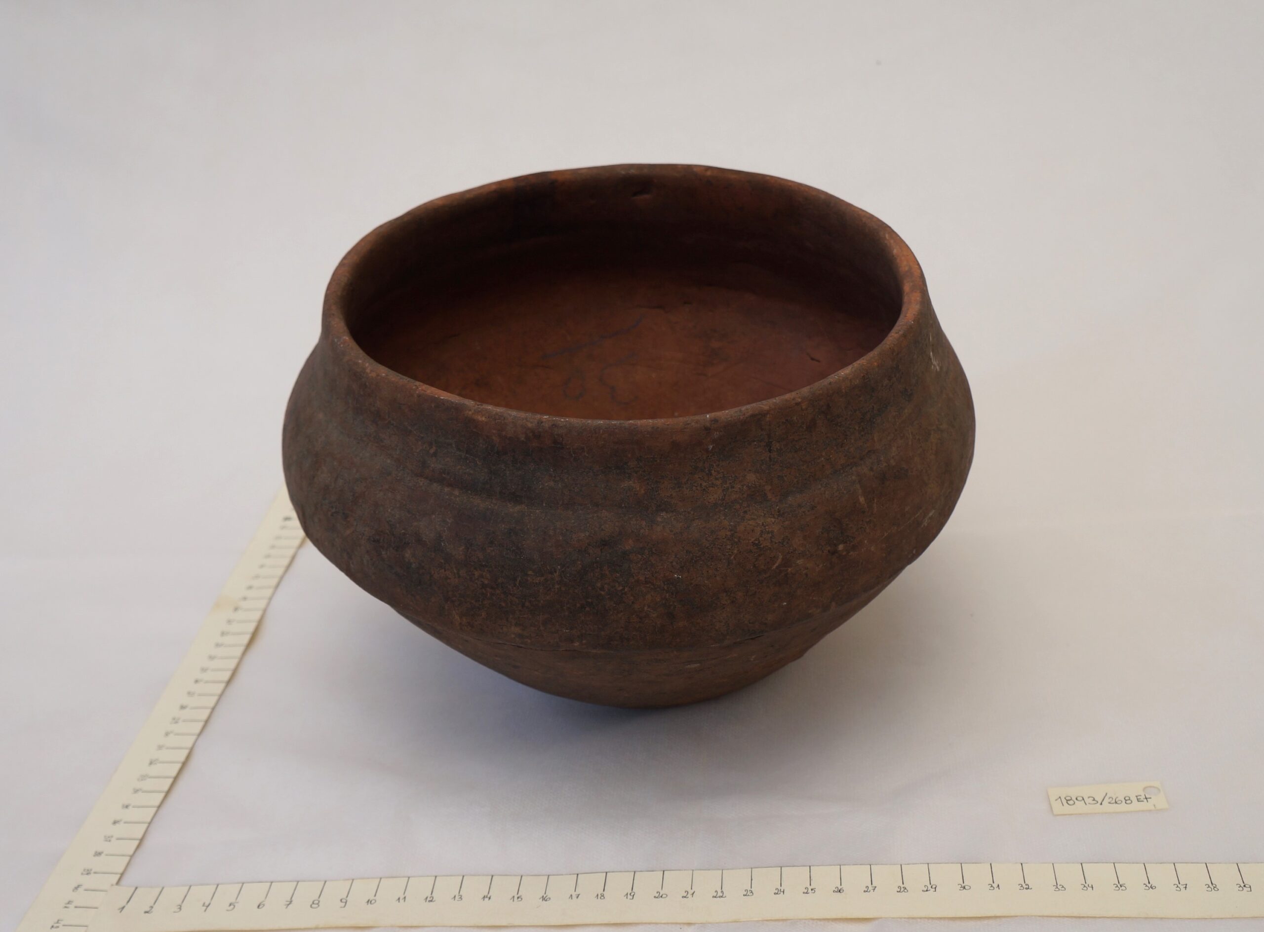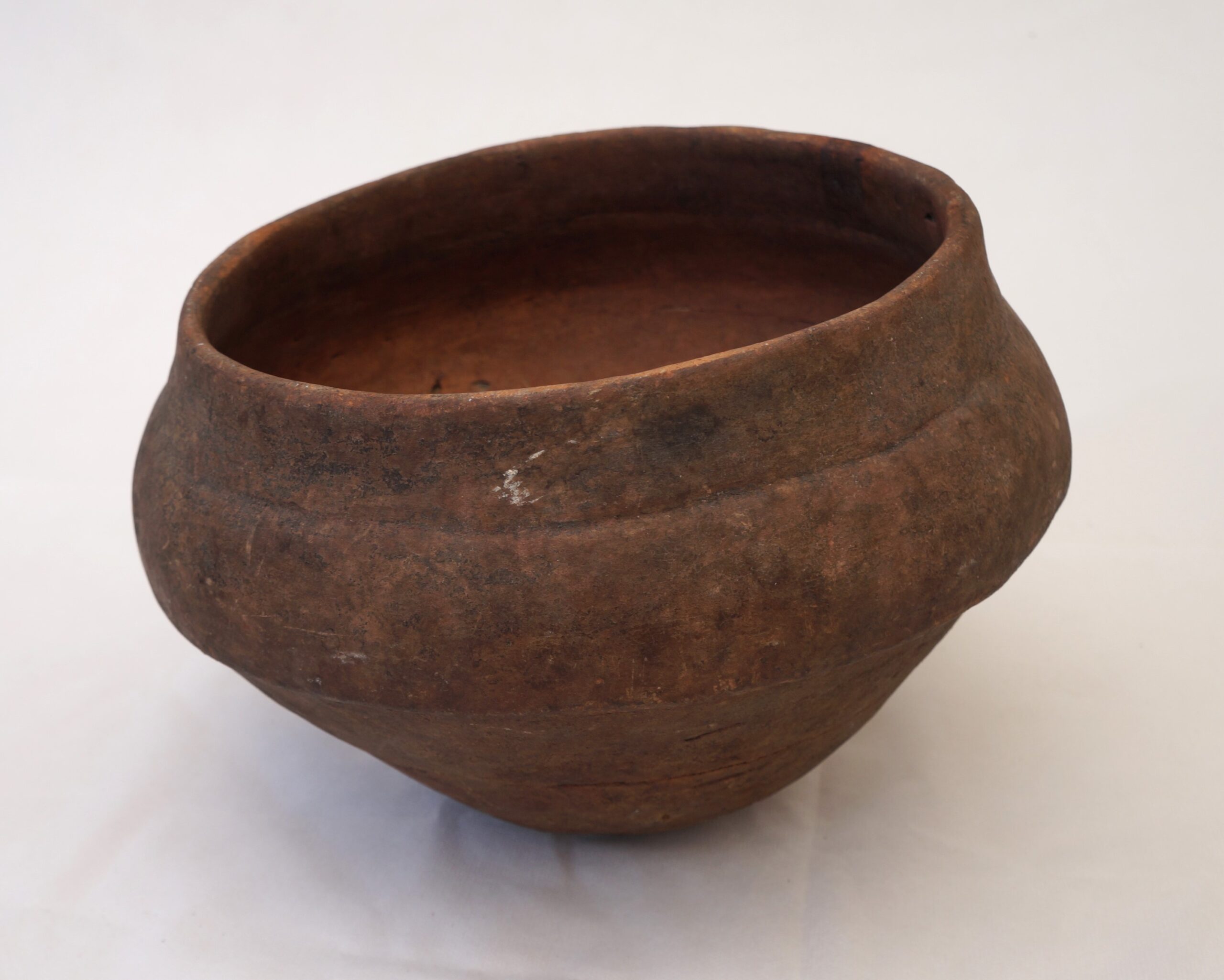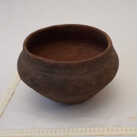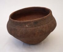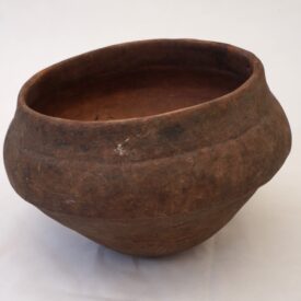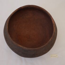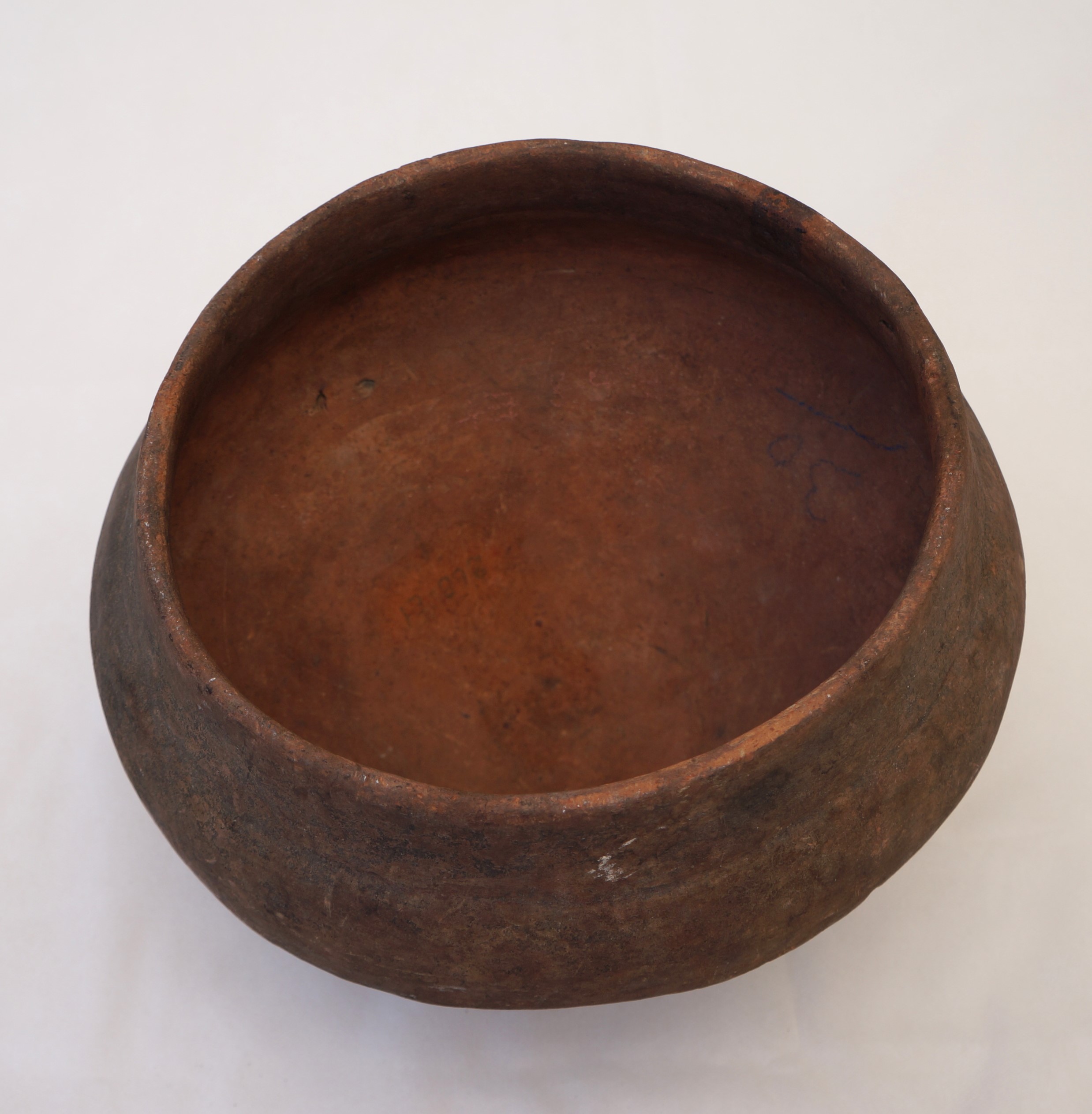 Urna zonaria guarani modelada pelo método de "cordas" em espiral com alisamento interno e externo posterior sobre toda a superfície. Base em forma de cone invertido sobre a qual há duas faixas ou zonas, a primeira se encurva para dentro e a segunda (arobocal) quase reta mas inclinada para dentro. Forma simétrica. Alisado. Não conserva vestígios de decoração.