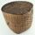Boca e corpo circulares sobre base quadrangular. Borda arrematada por fibra de cor preta. A base quadrangular é feita com trança do mesmo tipo, com ordens duplas de fibras.