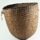 Sarambé. Cesto revestido com cera. Boca e corpo circulares sobre base quadrangular. Corpo de fibras marrom claro e escuro, com tramas de cor preta à meia altura. Borda sem arremate. Base feita com ordens duplas de fibra. Interior completamente revestido por uma camada de cera preta. Técnica "twilled work" ou "cruzado".