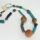 Desenho do colar feito de triângulos formados por fragmentos de madeira taquari, sendo um dos lados ou vértices alternadamente feito por uma semente em preto e vermelho. Na parte frontal pendem três sementes arrematadas por um penacho de penas cor de areia.