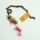 O fio que contorna o pescoço é feito de fragmentos de espinho de porco espinho separados por pequenas sementes escuras, quatro sementes grandes em preto e vermelho decoram a parte da frente. Unido por duas pontas do fio um adorno feito de espinhos unidos em forma trapezoidal, arrematados por duas sementes grandes e três penas coloridas em cada uma.