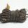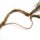 Dois pedaços de corda de fibra vegetal, um com 11 cm e outro com 9 cm, unidos por um nó. Pendendo das extremidades, grupos de penas brancas, longas de mais ou menos 15 cm, atadas de duas a duas formando dois tufos tendo cada um 5 grupos com dez penas.