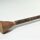 Flecha batoque, para passarinhar. Batoque de madeira em forma de pilão com ponta aguçada. Parte inferior do batoque termina em longo espigão ponteagudo, inserido sob pressão na parte medular da haste de taquari, com enrolamento de fibras. Entalhe chanfrado na base da empunhadura. Sistema de emplumação de duas penas inteiras aplicadas, em lados opostos, à base da flecha e presas por fibras.