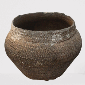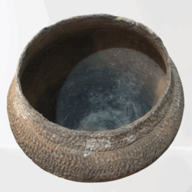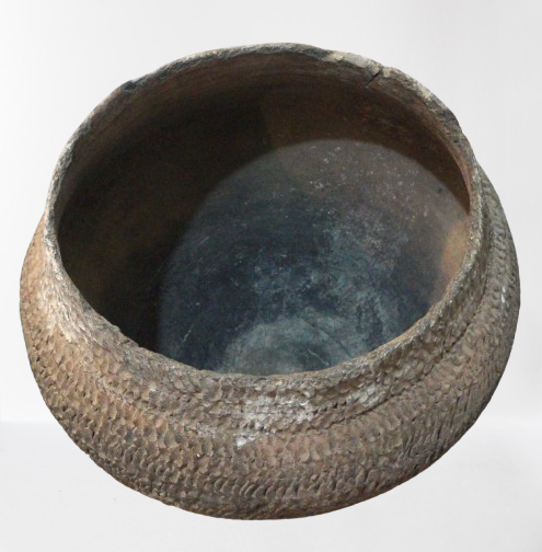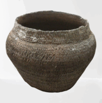 Yapepó, panela. Coniforme, com encurvamento para dentro na parte superior. Zona tronco-cônica em torno da borda. Confeccionada pelo método de cordas ligadas em espiral. Alisada na superfície interna. Forma simétrica.