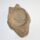 Estilização zoomórfica. Espessa lâmina tabular em forma de triâgulo escaleno com arestas rebaixadas. Sem sulco oral. Base ligeramente côncova. Superfície lisa.