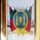 Imagem oval do Brasão do Rio Grande do Sul no qual constam as palavras liberdade, igualdade e humanidade, impresso sobre fundo preto, com moldura dourada.