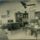 Homem voltado para a direita, cabelos curtos e bigode, vestido com terno e sapatos escuros, camisa branca, sentado em frente à escrivaninha sobreposta por abajur e outros objetos, ladeada por armário e mesa em pequenas dimensões e várias cadeiras.