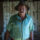 Homem de chapéu marrom, cabelos grisalhos sob o chapéu, camiseta de mangas até o cotovelo na cor branca com o logo de empresa de transporte rodoviário, calça cinza- escuro.
