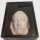 Escultura em baixo-relevo representando o busto de uma figura humana masculina em perfil voltada para a esquerda. A obra apresenta detalhes anatômicos como cabelo, orelha e parte do tronco, com destaque para as dobras da vestimenta.