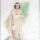 Personagem regionalista, masculino, de pé e em corpo inteiro, posição frontal, cabeça coberta por tecido ou assemelhado de cor clara, camisa e calça franjada brancas, sobrepostos por poncho listrado, botas com esporas, chapéu preto nas costas e amarrado no pescoço, relho na mão direita.