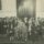 Fotografia em preto e branco, com bordas brancas, registrando Raul Pilla de óculos de grau de armação grossa sentada em ao lado de um homem em uma grande poltrona. Do seu lado esquerdo há mais dois homens sentados em cadeiras e, do lado direito do homem sentado na grande poltrona, há mais quatro homens sentados em cadeiras. Em segundo plano há um grupo de homens em pé, estando entre eles somente uma mulher. A parede de fundo da foto possui uma pintura de floresta e três colunas.