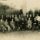 Fotografia em preto e branco, com bordas brancas onduladas, registrando Raul Pilla grisalho, de óculos de grau de armação grossa sentado com as pernas cruzadas junto a quatro homens, do seu lado direito, e cinco homens do seu lado esquerdo. Ao fundo há um grupo de homens em pé e uma grande porta de metal e vidro.