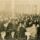 Fotografia em preto e branco, com bordas brancas onduladas, registrando Raul Pilla discursando em pé entre seis senhores sentados, três de cada lado, todos atrás de uma mesa com toalhas brancas, uma decoração de flores ao centro, na frente de Pilla, e algumas garrafas. No verso está escrito Londrina, 25. VII.55