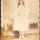 Mulher de vestido estampado, cabelos presos, sentada em uma cadeira na varanda de uma residência, uma sombrinha no colo.