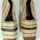 Lenço de cetim rosa-claro com a letra M bordada com linha magenta em uma das pontas, adornada com bordado floral verde e amarelo. Na ponta paralela há uma letra O em bordado idêntico, com as mesmas cores e detalhes. Pertenceu a Mafaldo Orgim.