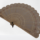 Leque com cabo de marfim trabalhado em recortes de flores e folhas e incrustações de madrepérola com pinturas à mão em ouro. Folha de pano (seda pura) pintada a guache com arabescos dourados e pequenas lantejoulas, tendo no centro uma figura de mulher em descanso sobre uma pedra e duas rosas entrelaçadas, tudo em fundo azul claro. Verso com armação e cabos lisos, alça de metal amarelo.