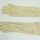 Luvas em pelica verde com abertura na parte interna do punho com fechamento por três botões perolados amarelos. Possui costura de ajuste no dorso da mão. Usada pela doadora e filhas.