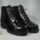 Par de sapatos femininos em couro cinza, forrado em pelica bege. Bico e salto fino. No forro dos pés, na altura do calcanhar, em letras douradas, está escrito "Seabra - P. Alegre". Etiqueta em tecido com letras vermelhas "JOY - Rio" no lado esquerdo do pé esquerdo.