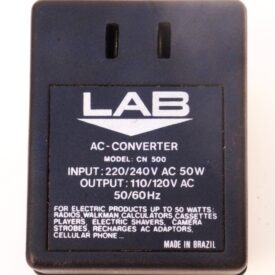 Também foi acrescentado ao kit um adaptador de plástico preto em formato de cubo, com uma entrada de tomada tipo A e saída de tomada tipo C, da marca LAB.
