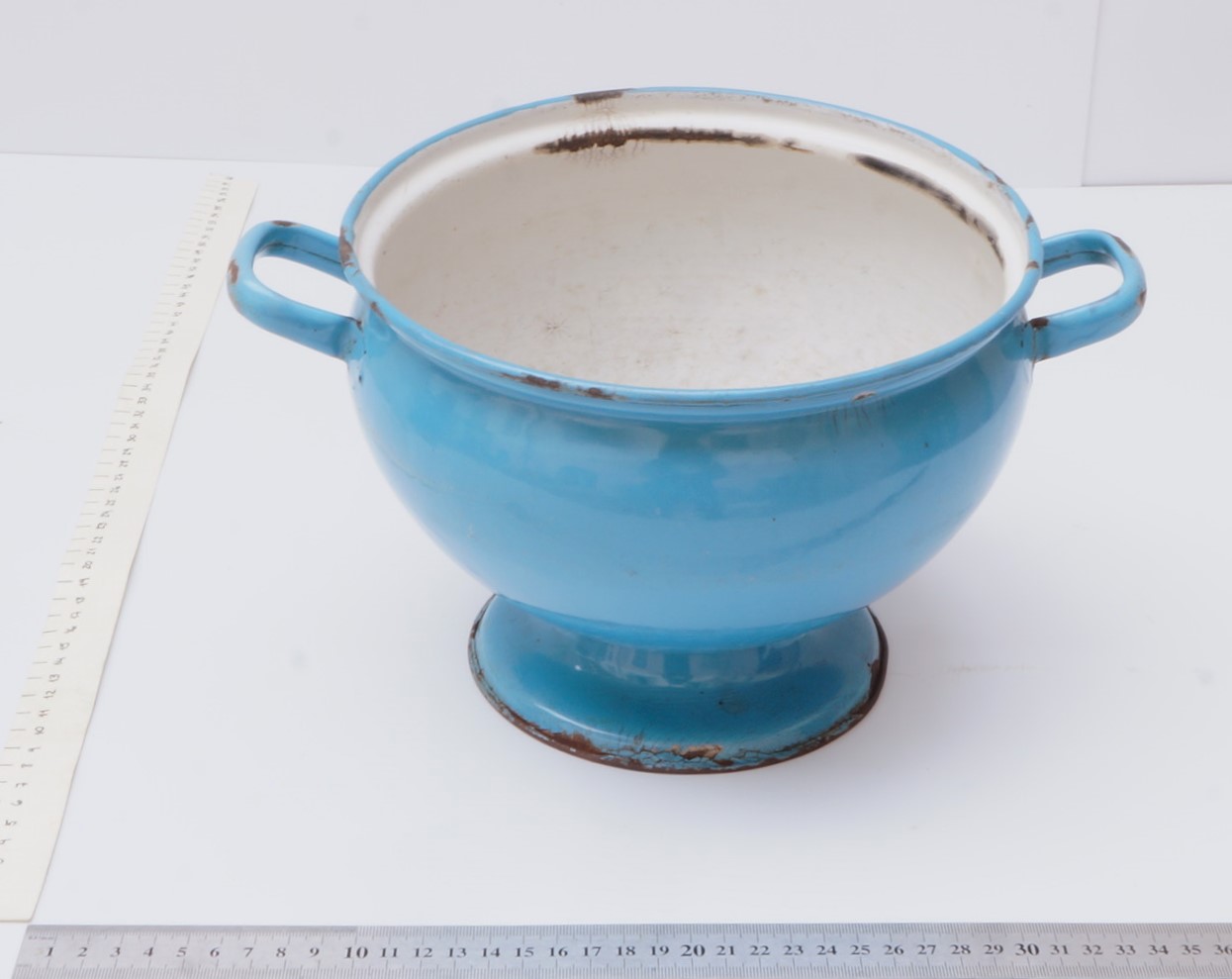 Altura 16,3 cm; diâmetro 22,5 cm (boca); profundidade 14 cm; circunferência 71 cm (boca)
